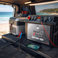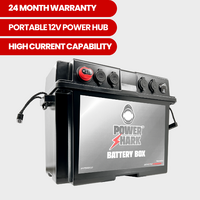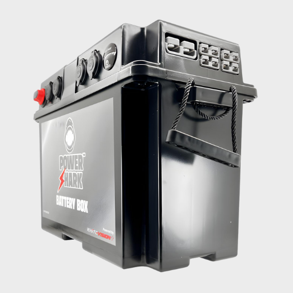 Constructed from heavy-duty ABS housing and equipped with secure carry handles, the PowerShark Battery Box features multiple high-current Anderson connectors, dual 12V accessory sockets, USB charging including USB-C PD fast charging, and an integrated digital voltmeter with touch on/off control. Compatible with AGM, calcium, deep cycle and LiFePO₄ batteries, it delivers dependable performance wherever portable power is required.