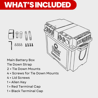 • Battery secure system – includes tie-down strap and mounting points to keep batteries stable in transit.